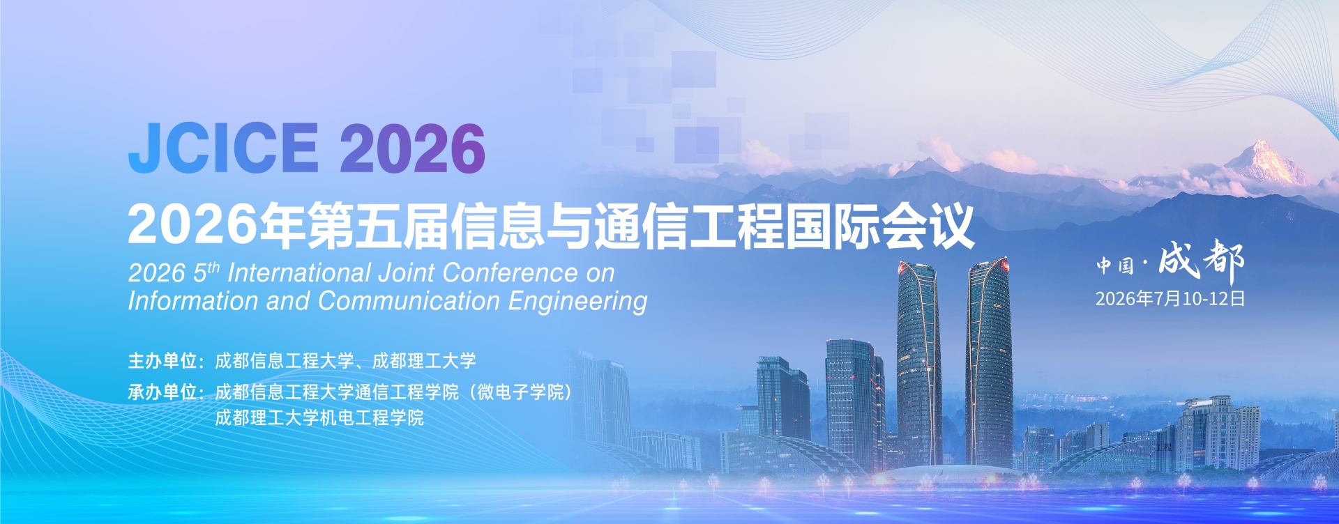 It is with great pleasure that we invite you to the 2026 5th International Joint Conference on Information and Communication Engineering (JCICE 2026) which is scheduled to be held in Chengdu, China on July 10-12, 2026. JCICE 2026 is organized by Chengdu University of Information Technology and Chengdu University of Technology, and hosted by College of Communication Engineering (College of Microelectronics), Chengdu University of Information Technology and School of Mechanical and Electrical Engineering, Chengdu University of Technology.